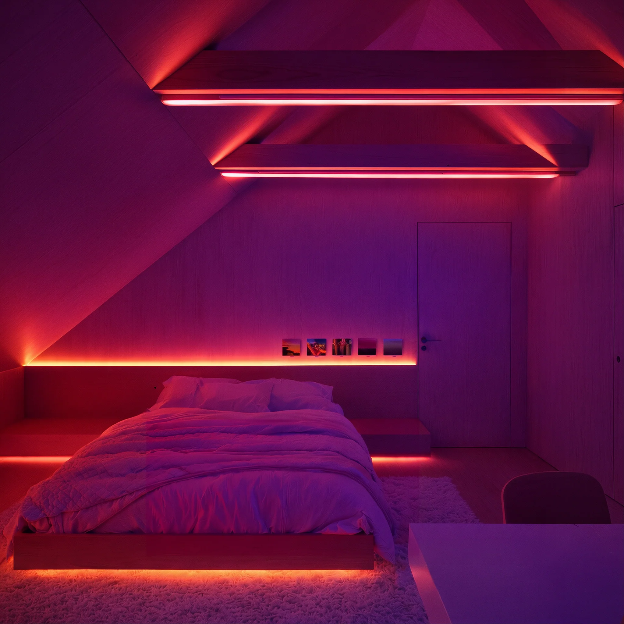 An 80" lightstrip kit that comes complete and ready to install. Perfect for highlights, accents, and bold multicolor layouts, it features Polychrome Technology with 8 addressable zones per strip and millions of colors. Cut it to size or extend with LIFX Lightstrip Extensions up to 33ft for the perfect fit.