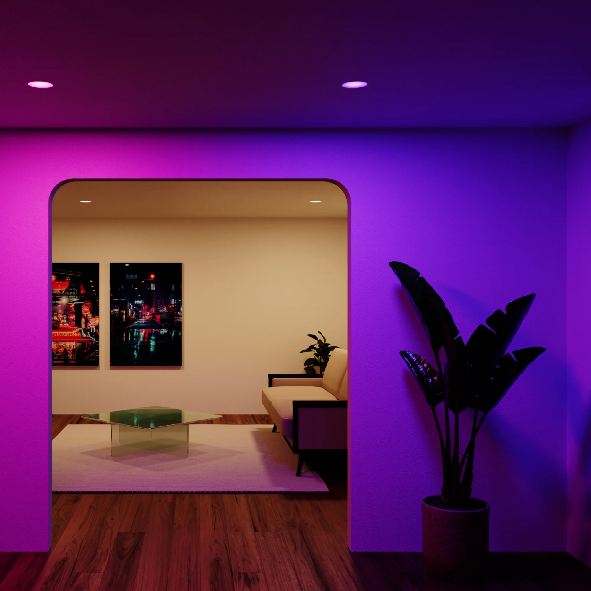 An energy-efficient fixture that delivers brilliant light and endless versatility. With 16 million vivid colors plus tunable warm-to-cool whites, it adapts to every moment from dawn to dusk. Producing an impressive 1200 lumens from just 14.6 watts, it offers Wi-Fi control, dynamic effects, and smart integrations right out of the box. The deep baffle design and interchangeable magnetic trims create a sleek, modern finish, while canless installation makes it easy to wire directly in new builds or replace existing recessed cans.